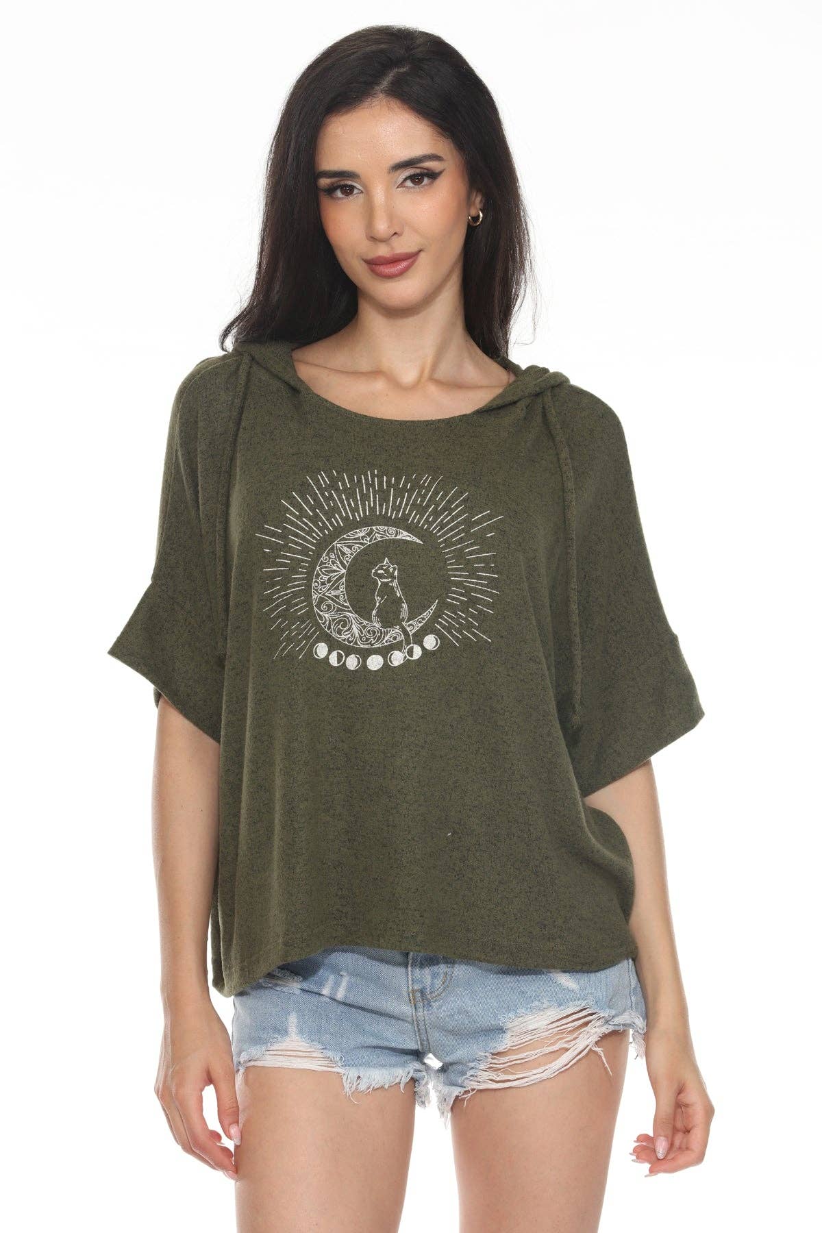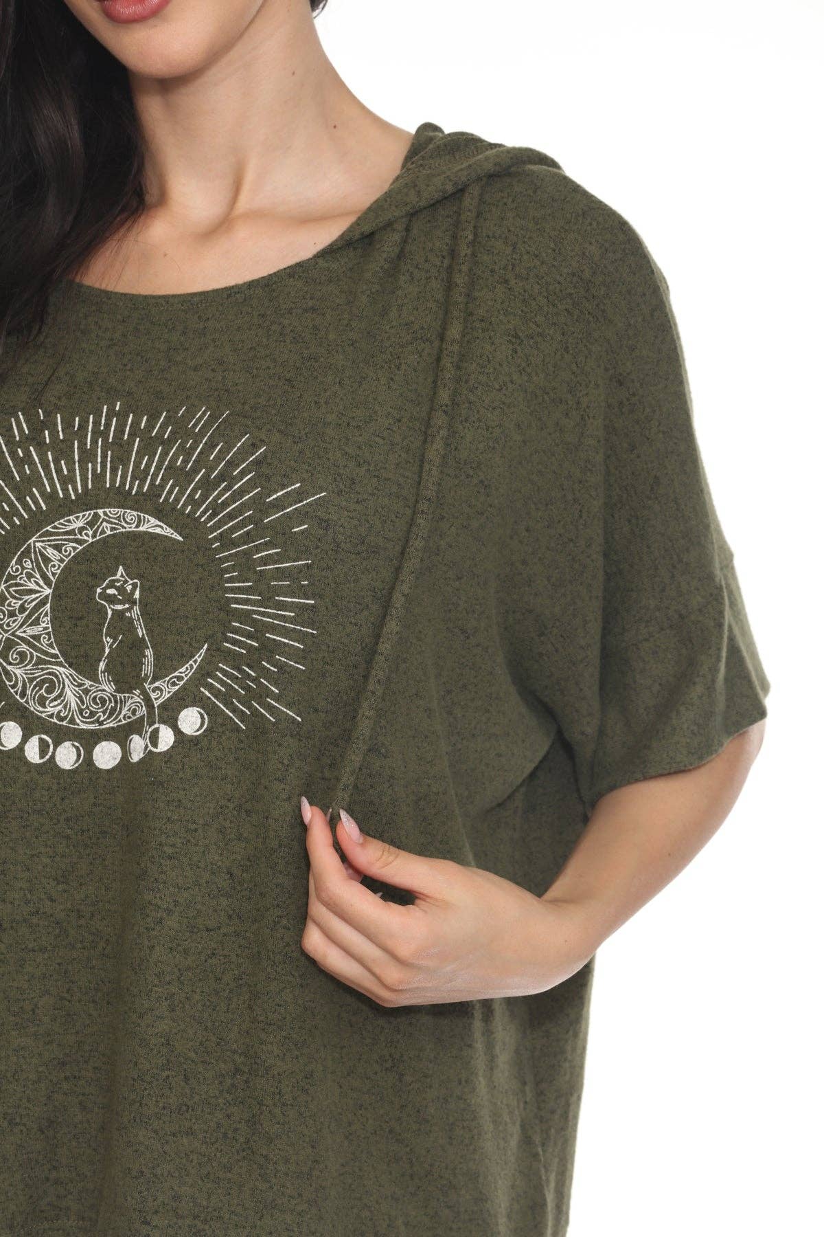 A dreamy blend of comfort and charm, this oversized sweater features a mystical lunar cat graphic front and center. Designed in a relaxed silhouette with dropped shoulders and soft fabric that drapes effortlessly for all-day coziness. Style it with leggings, denim, or shorts for a laid-back celestial vibe. Details: * Construction: 70% Rayon 30% Polyester * S/M - Length-23 | Sleeve length -3 Inches * M/L - Length-23.5 | Sleeve length -3 Inches * Made in Nepal