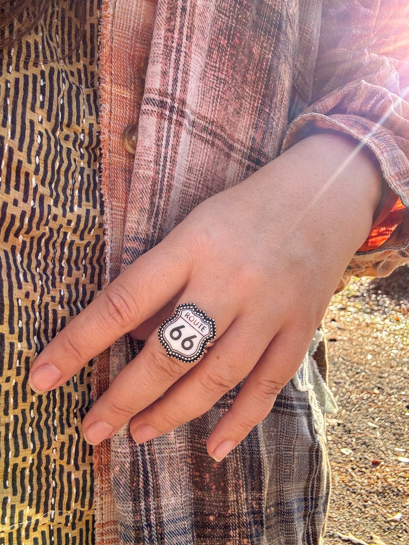 Adjustable Route 66 Sign Cuff Ring 1" Size
